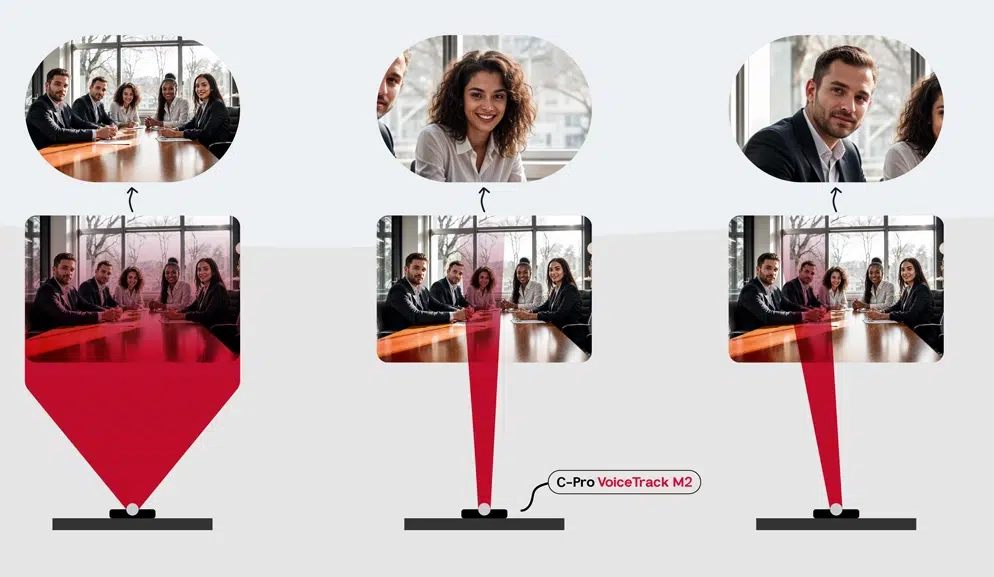 • Mise au point automatique et précise: le Voicetracking garantit que l'orateur est toujours dans le bon cadre, ce qui améliore la visibilité et évite les distractions.